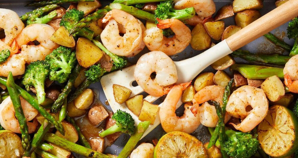 Looking for a flavorful, no-fuss dinner packed with zesty spice and wholesome ingredients? This Sheet-Pan Chipotle-Lime Shrimp Bake is the perfect weeknight meal! Roasted baby red potatoes create a hearty base, while asparagus, Broccolini, and succulent shrimp are infused with a smoky chipotle-lime butter for a deliciously bold kick.