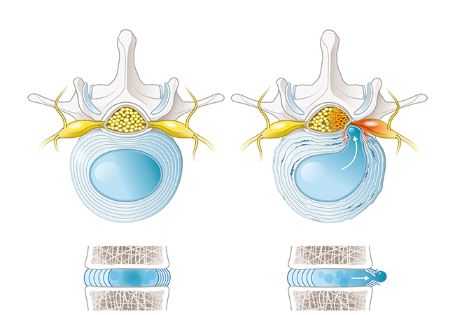 The number one culprit is age-related disc degeneration. Your intervertebral discs are small, cushiony structures that nestle between the bones of your spinal vertebra, helping to protect them from grinding against each other. As we get older, those discs start to dry out and lose flexibility, putting them at risk of herniation.